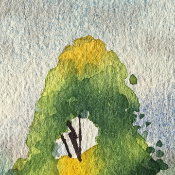 This heavy weight hot press paper is satin smooth, despite what the watercolor painting looks like. The application of pigment was extremely fluid especially wet on wet and produced no hard edges like the Cézanne hot press. The wet on dry technique on the tree also blended quite nicely. The paper remained wet an ample amount of time. The ultramarine blue formed extra large granules which surprised me because the paper is so smooth. I like granules btw, so that doesn’t bother me. For hot press paper, this one is high quality with easy fluid blending.