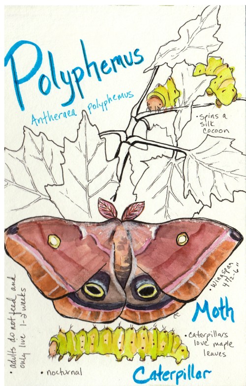 I’m so very grateful to be able to work at a nature center and learn about these beautiful creatures. I’m thankful that I recognized the Polyphemus caterpillar on my house and I hope my little shelter keeps him safe and on his way very soon.
