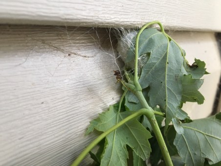 I tried pulling him off the house, thinking I could raise him inside until he emerges, however his construction was properly made and his silk cocoon was like superglue.