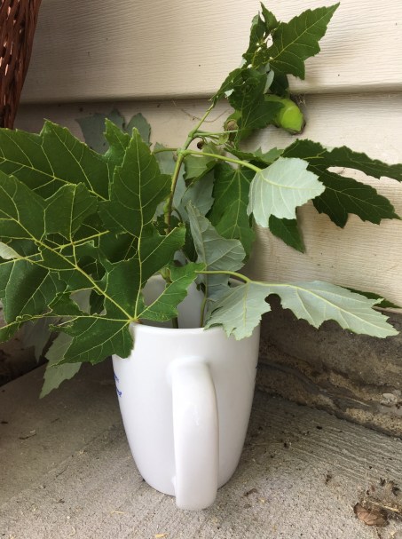 Now I faced a dilemma. Would he have spun his cocoon had it not been for my maple leaves? Did I do more harm than good? A racoon or skunk can easily walk up to him and consume him! Sometimes our best intentions are blindly made.