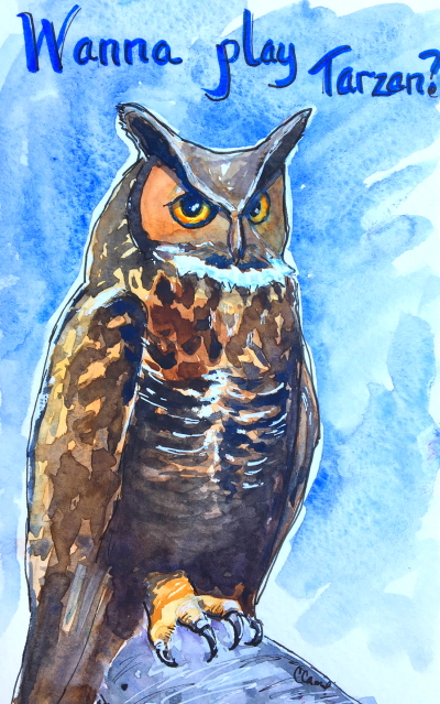 I’ve always wanted to see an owl in the wild while hiking. The natural way…not with a local bird group nor some Audubon field-trip, but surprisingly caught off guard while walking through the woods. For years, I’ve prayed for it. Then it happened. And it all started with, “You wanna play Tarzan?”