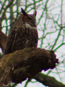 I am still in shock over the whole, unexpected event….how just by chance we flushed out a great horned owl trying to play Tarzan.