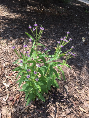 Blue vervain likes moist soil, so I planted it at the end of a dry stream bed which is connected to my rain gutter down spout. When it rains, the water collects in the stream bed and the vervain benefits from the moist soil. Too bad in Chicago it has been super hot and super dry lately! We need rain!