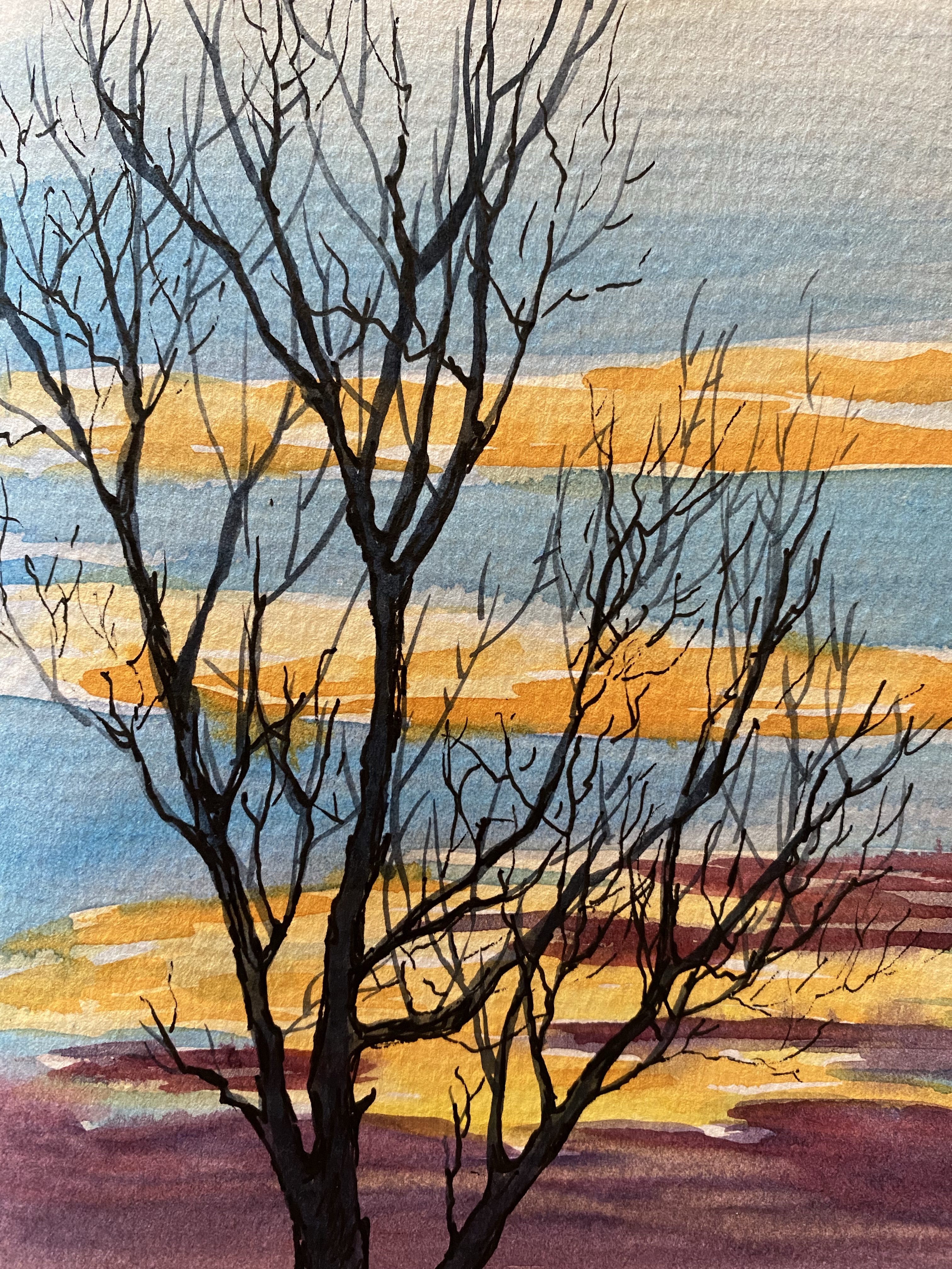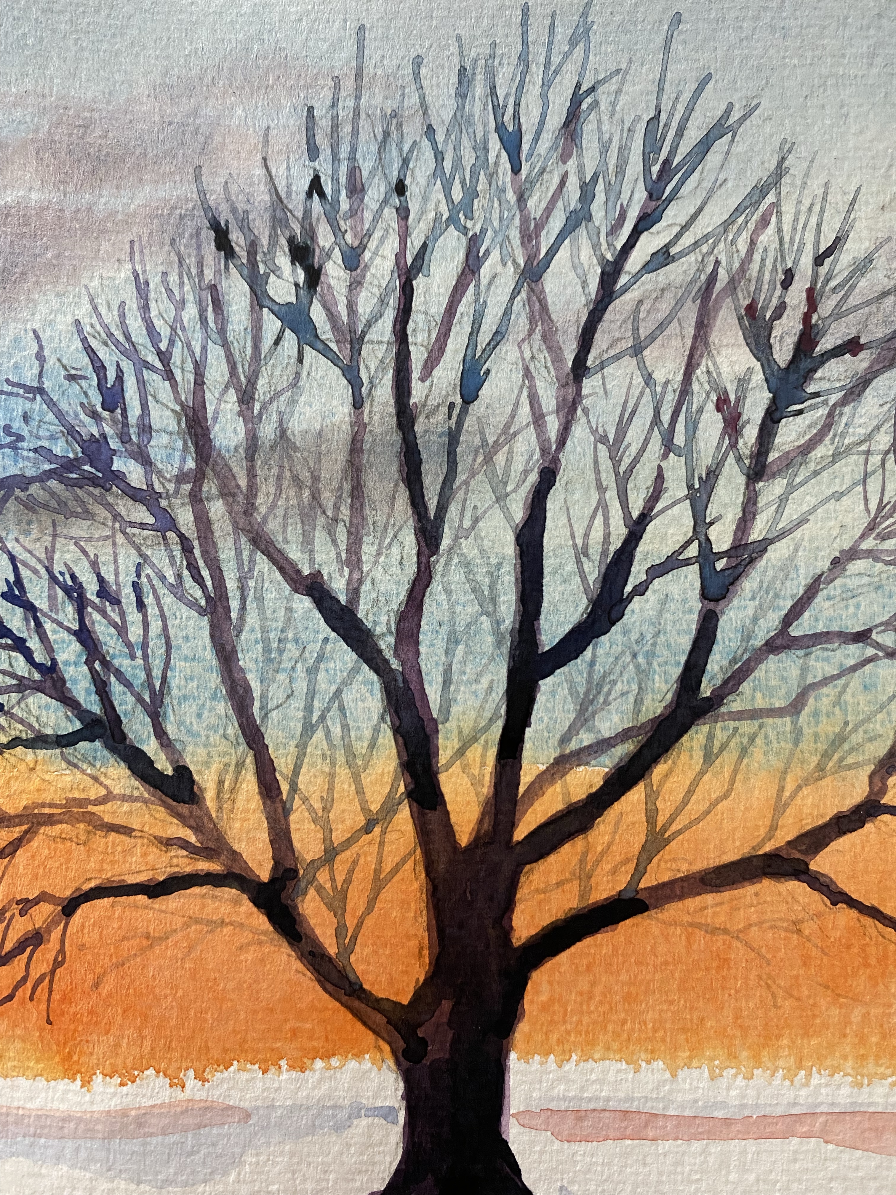When I am melancholy, I paint a tree. When I am sad, I paint a tree. And when I’m longing, I paint a tree. I find myself painting them even when happy and content. They always seem to give me comfort. They’re my go to subject.