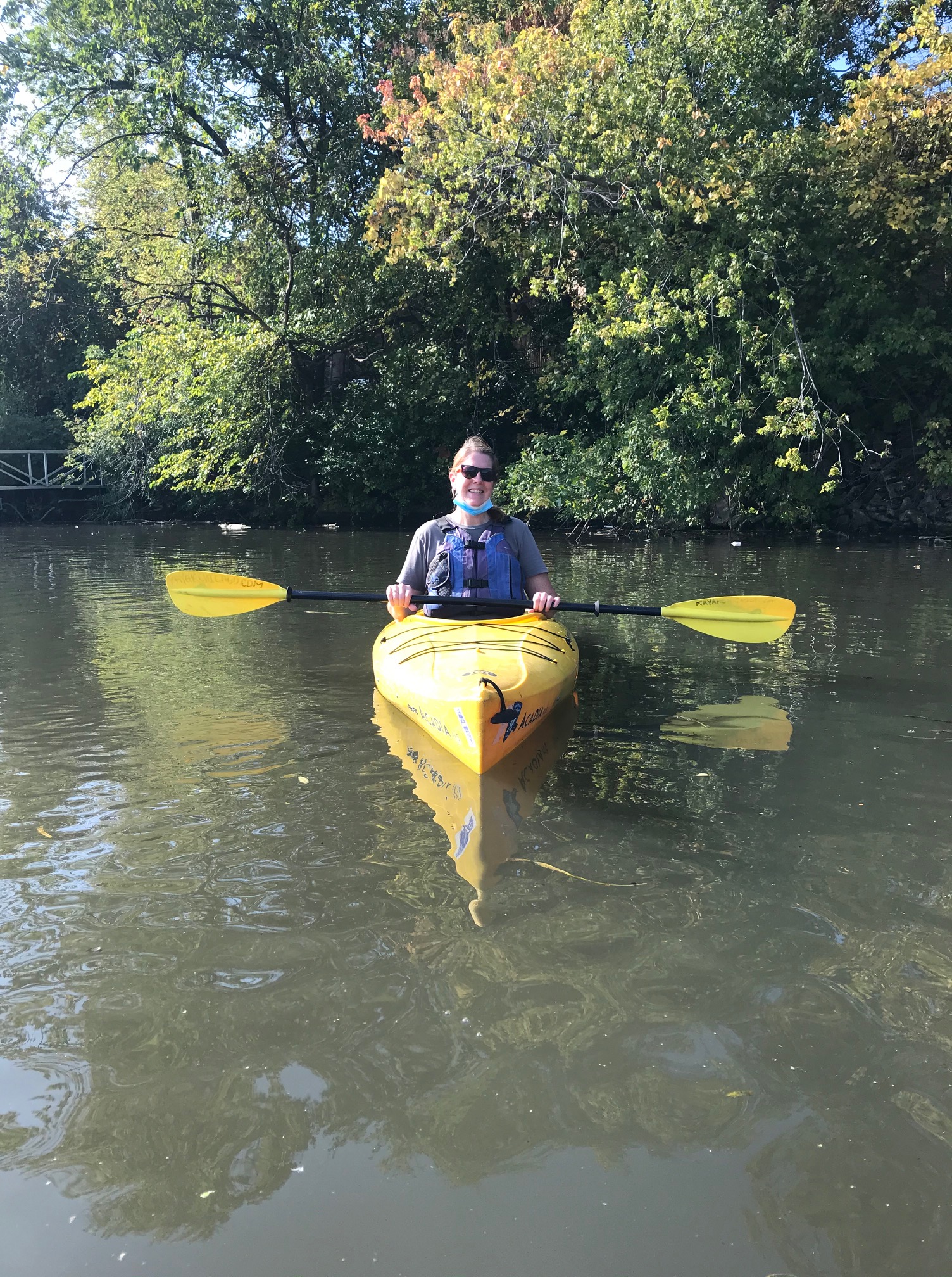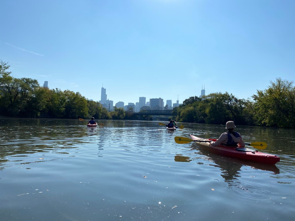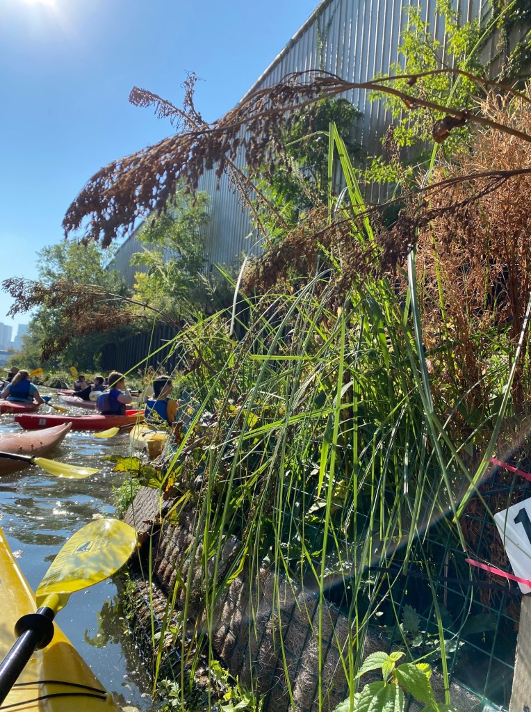 Yesterday I had the opportunity to kayak the Chicago River at the Wild Mile. What is the Wild Mile? It’s a stretch of the Chicago River that is actively being restored by installing floating native gardens along the river’s edge. Without these floating gardens, organisms cannot thrive. They do not have shelter from the sun, nor a habitat to feed and breed. A healthy freshwater ecosystem has trees (shade from the sun), floating wood debris (shelter and food for organisms), leaves (food), and a diverse array of organisms above the water and below. This could not happen with the original construction of the Chicago River which was walled in concrete. According to the Kayak Chicago staff, in the 1970’s there were only 5 species of fish found in the Chicago River. After the Clean Water Act of 1972 was instated, people thought differently about dumping pollutants into the river. As of 2016, a study found 27 species of fish in the Chicago River. Things are moving in the right direction.