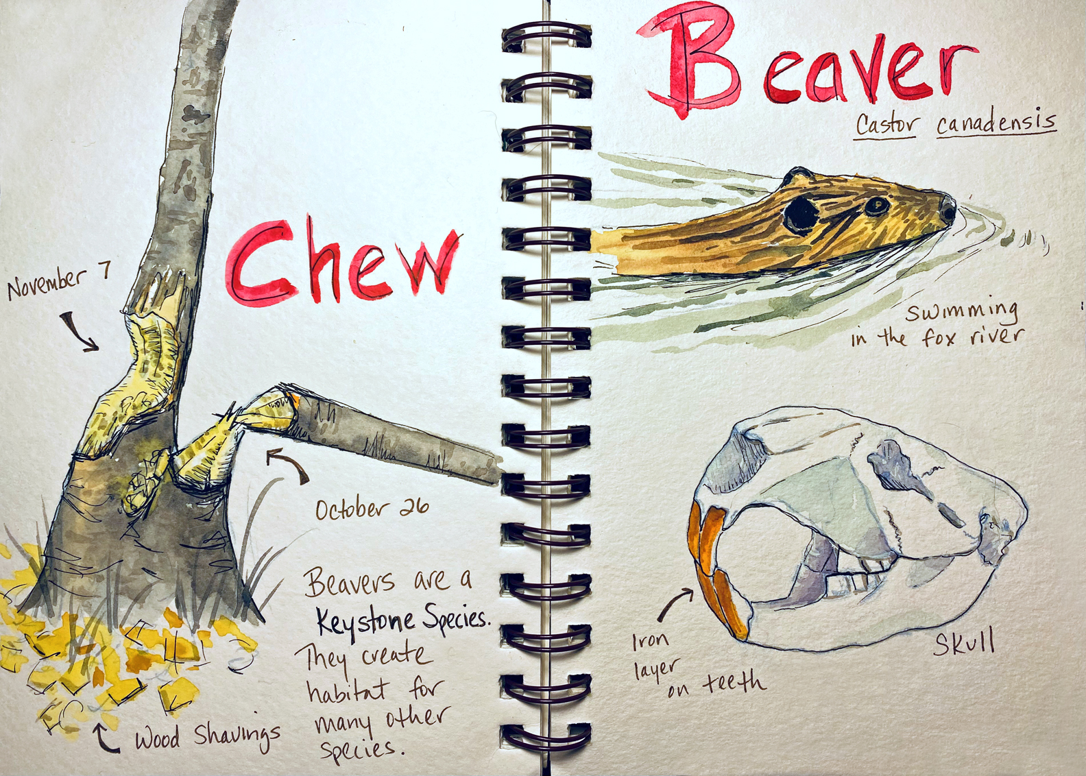 No, that orange color on its teeth is not tartar (see skull sketch above), but a layer of iron. Go beaver, go!