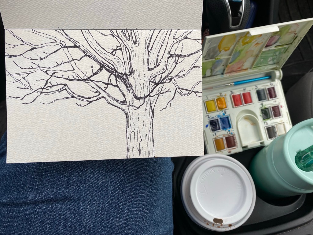 After I painted the tree with watercolors, I doubted my decision to do so…should I have left it alone? With or without color, it was a great exercise. And it quelled my desire for creative time.
