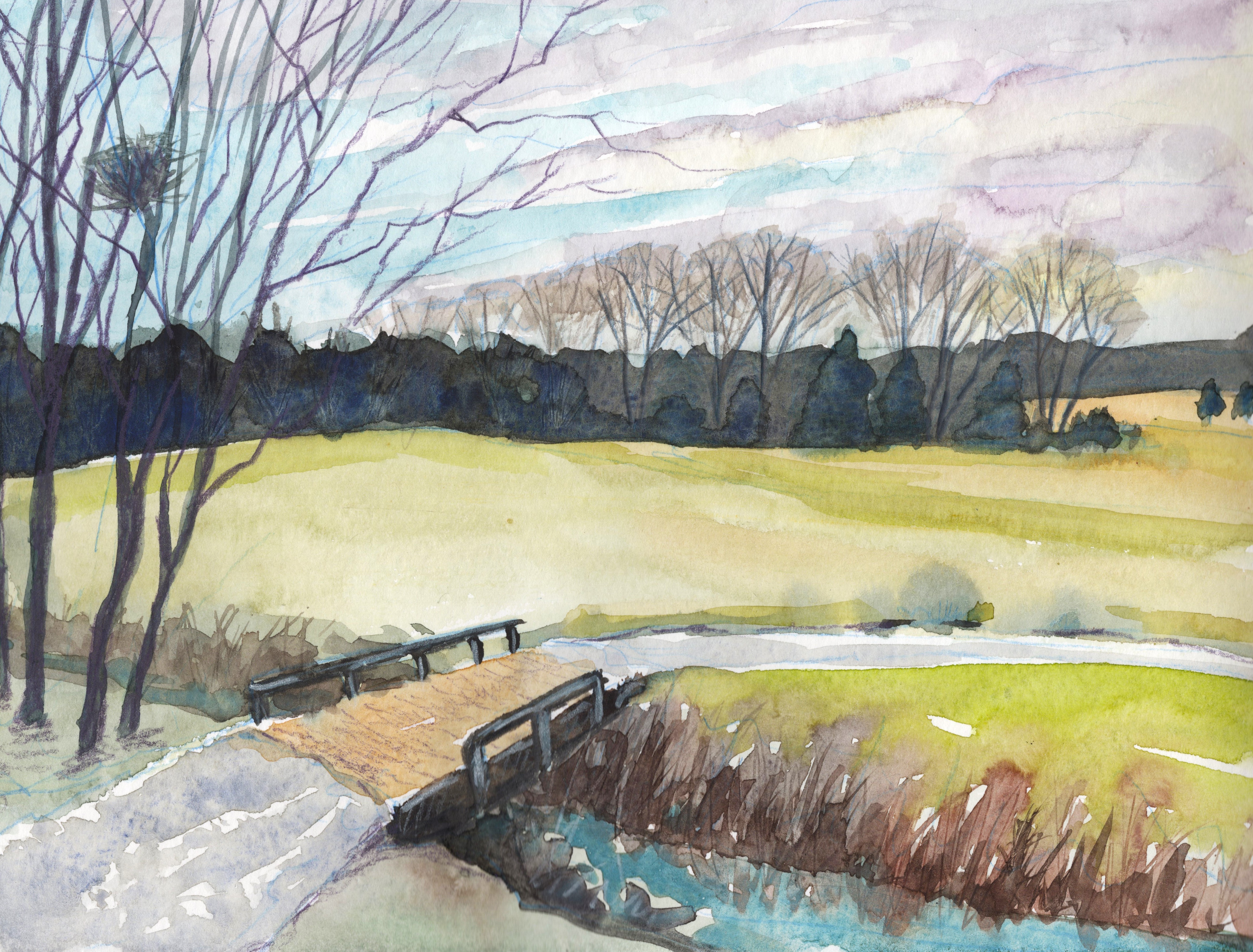 An old nest, clouds that sail, colors in the water, and that trickle song embody this wonderous winter walk. Cabin fever has no hold on me when I’m out here.