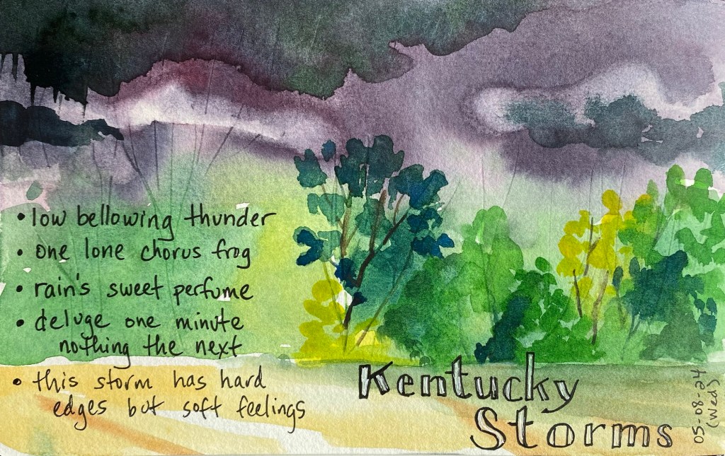 We’ve been experiencing several days of passing storms, making spring plants happy and this storm lover happy too. There’s something exciting about a gentle disturbance in the air. Perhaps it’s the blackened sky against newly emerged chartreuse leaves. Perhaps it’s the low moans of the sky, a sound you cannot pinpoint from which it begins. Or maybe it’s the way wildlife behaves… that one chorus frog calling for a mate under a tempest sky at such a moment, romantic.