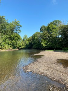 That’s us scanning the floor of a creek by Shanty Hollow Waterfall. She taught me that a rock with a geode inside would be round or oblong and maybe a little irregular. She has the equipment to crack them open and from what she’s learned, Kentucky is a hotbed for such rocks.
