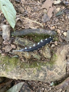 This tiny feather belongs to a downy woodpecker. I love the spots on the delicate feather’s edge. I don’t know where he is right now but he left a piece of himself that makes me visualize a beautiful creature flying from tree to tree. Even my mind becomes alive in the forest.
