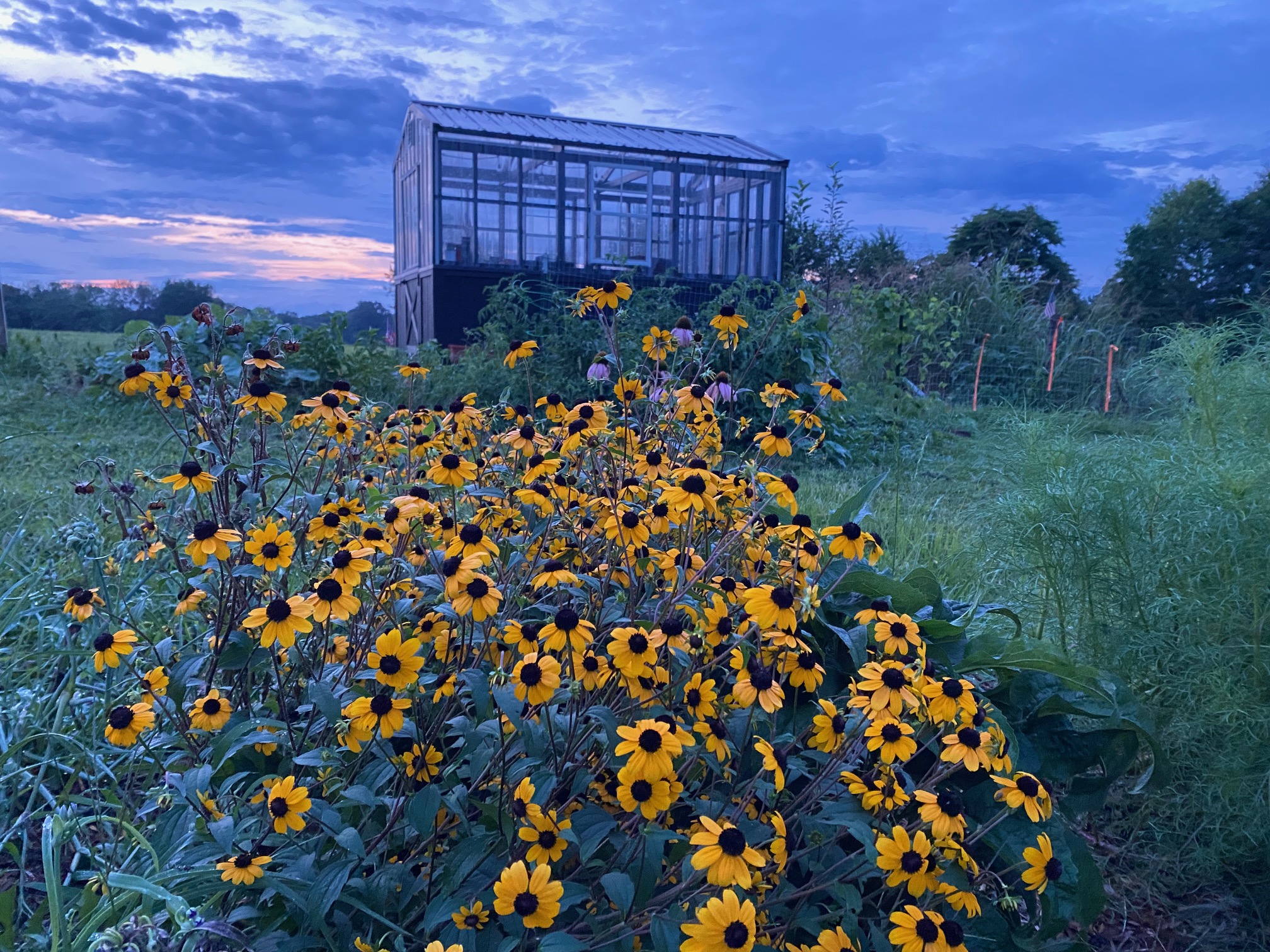 Here is more of a romantic view of the greenhouse at the end of last summer.