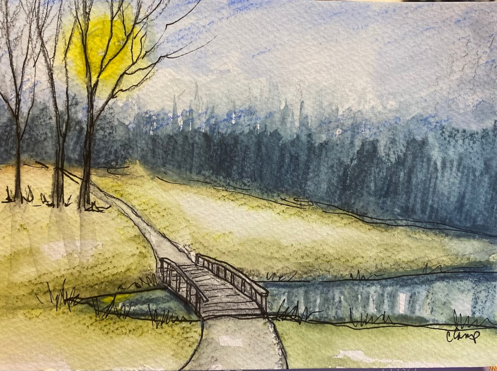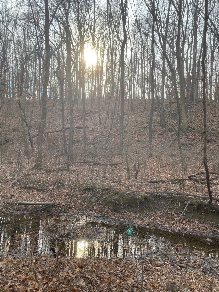 The sun stopped me right here. It was calling me through the stark trees. Void of warmth on this cold day, I still stood in amazement. The sun’s reflection was a witness to the beautiful scene in the winter sky.