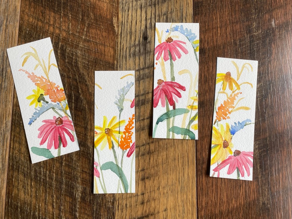 I’ve made bookmarks before, but I laminated them before punching a hole for the ribbon. Lamination is great, it protects the watercolor for a long time, but it covers the rough texture of the paper. I want people to feel it. I want them to run their fingers up and down the bookmark to experience the bumps and know that this is truly homemade…not printed…not made by AI… but human-made from the heart.