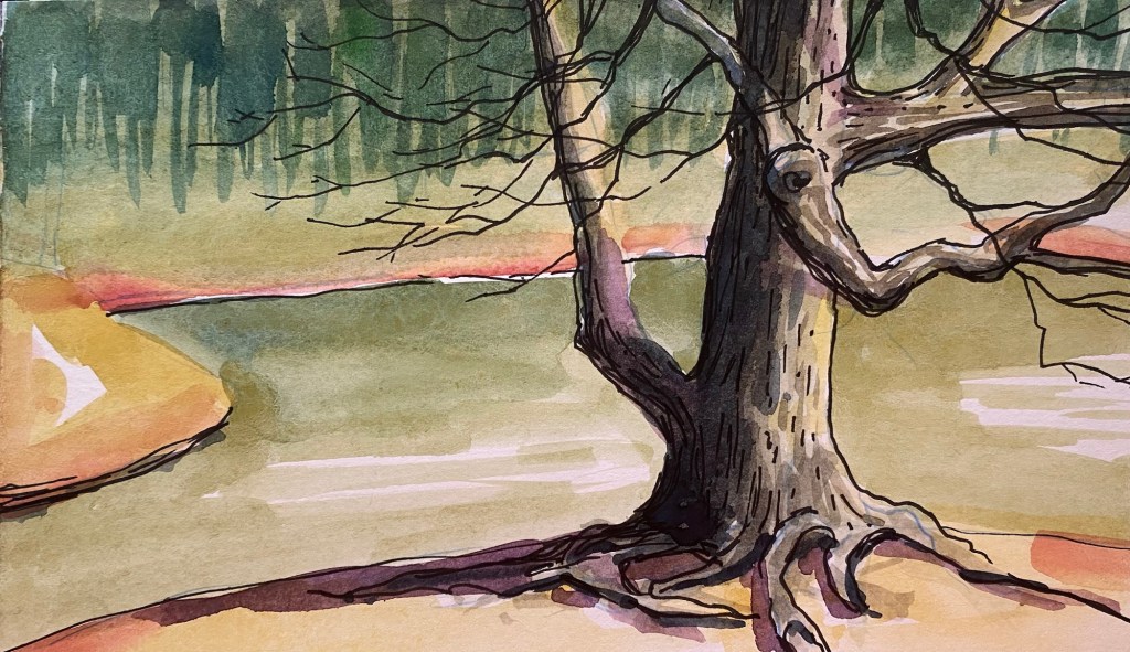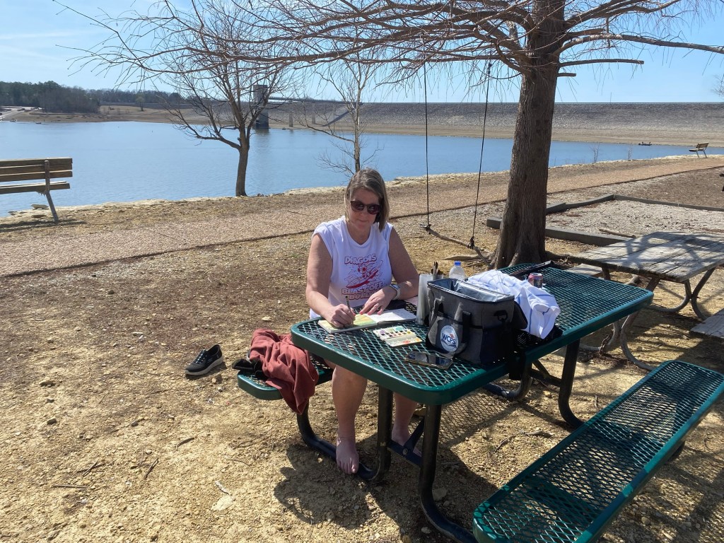 So in March, when the temperature broke and the sun visited longer, I embraced this event with open arms. I raced to a nearby lake with sketchbook and watercolors….and oh yeah, a yummy homemade lunch.